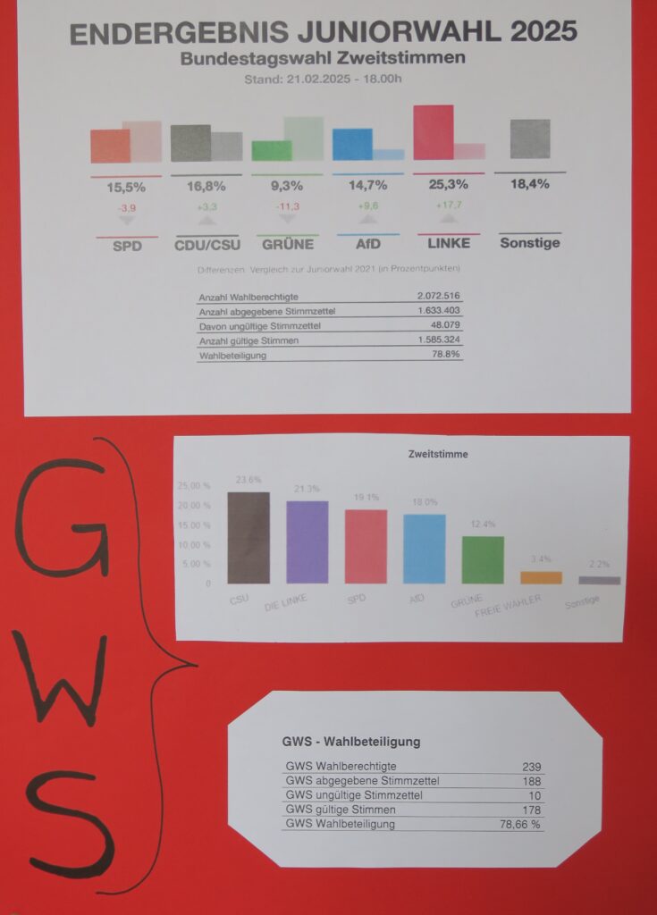 Mit Spannung wurden die Ergebnisse der Jugendwahl 2025 erwartet. Am Tag nach der Wahl am 23.02.2025 durften endlich auch die schulinternen Ergebnisse der Jugendwahl 2025 veröffentlicht werden. Die SchülerInnen der...