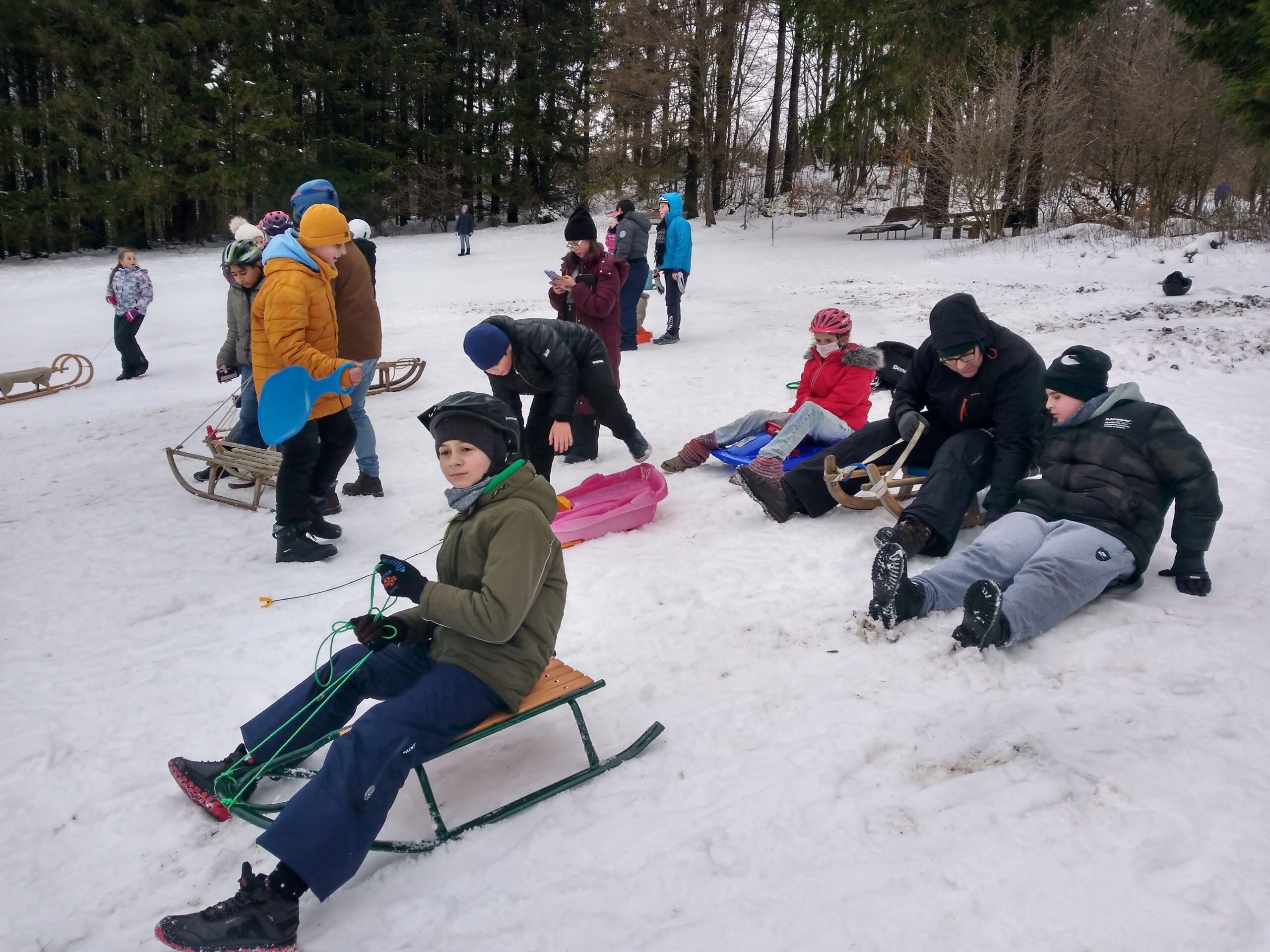 Am 01. Februar war es endlich soweit! Die SchülerInnen der beiden 5. und der 6. Klasse verbrachten einen Tag im “Tiefschnee” der Rhön. So viel Schnee hatten die Jungs und Mädels wahrscheinlich noch nie in ihrem Leben gesehen. Erst stapften wir am Kreizberg knietief durch die verschneite Landschaft und später fuhren wir zum Farnsberg und packten unsere Schlitten aus. Die Fahrt dahin war ein wenig spannender als wir wollten – der Bus rutschte in einer Kurve gegen einen Baum. Aber es ging alles gut und wir erlebten einen intensiven Tag im Schnee.