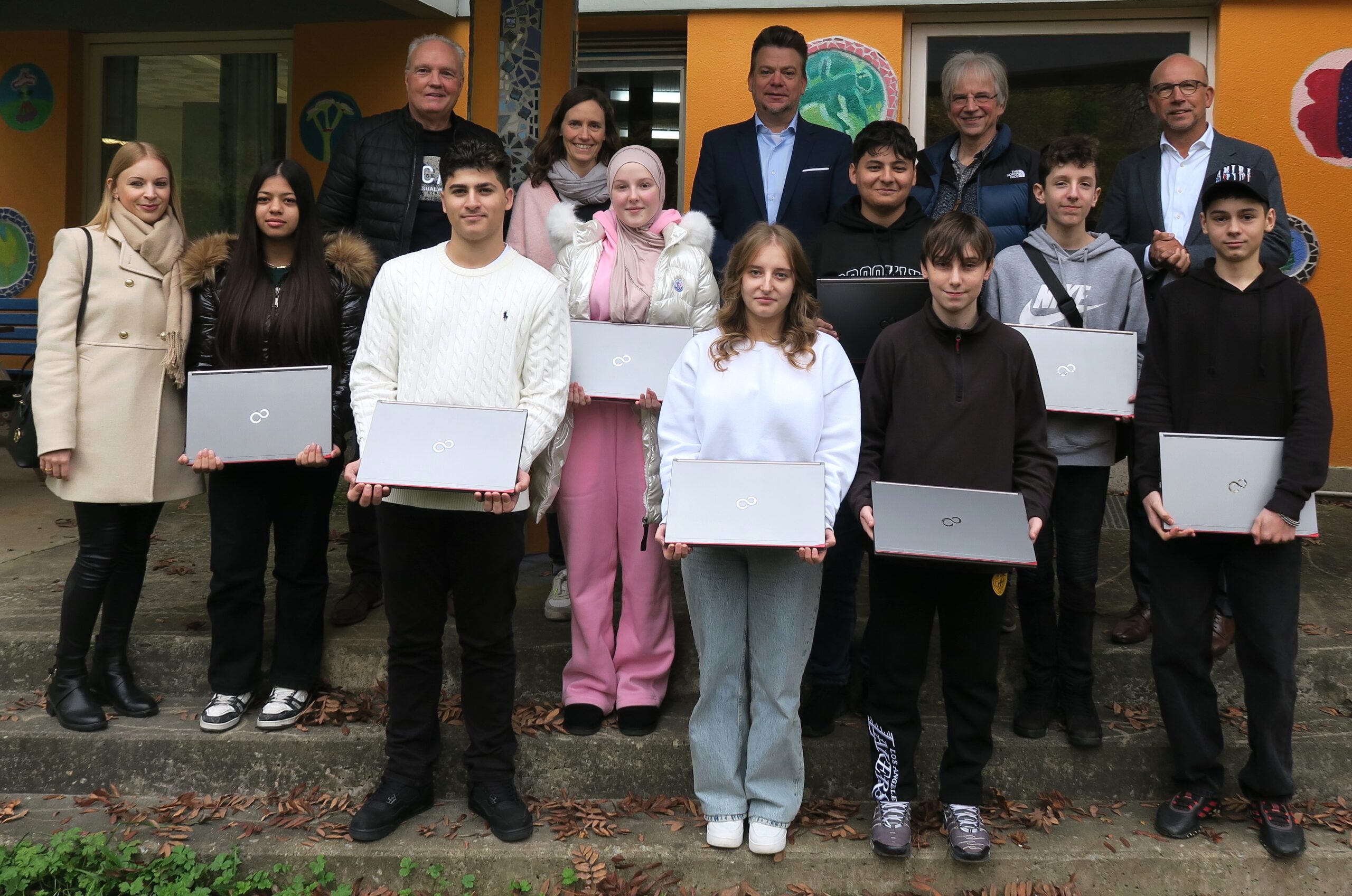Mit einer großzügigen Spende hat die VR-Bank Würzburg unsere SchülerInnen mit 60 Notebooks bedacht!