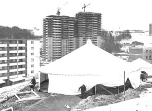 Linus Dietz, Rektor a. D.: „Pfarrer Wagner lud uns damals in sein Zelt Gottes ein, um mit uns ‚zünftig Messe zu feiern‘. Und das klappte. Die Jugend strömte herbei. Als Lehrerstudent konnte ich mit meiner Band ‚SANTA CRUZ“ noch mehrfach im Neubau der Kirche spielen und mit Gesängen, die heute gang und gäbe sind, den Gottesdienst auffrischen.